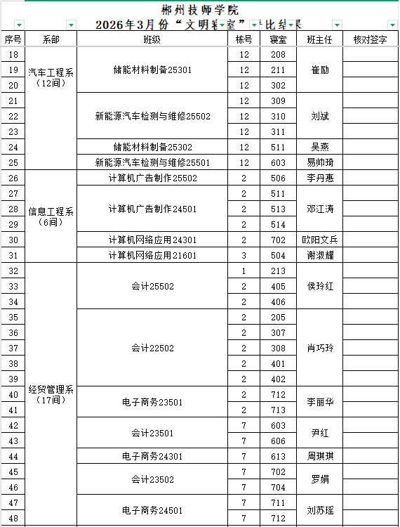 2026年3月份“文明寝室”名单
