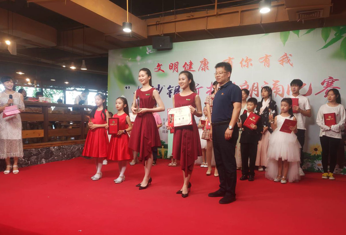 蒋路金、曾嘉欣组队参赛的作品《文明旅游,有你有我》在5月18日校内选拔赛中获得第一名,并得到了举办方赛事组委会的认可,入围青少年组决赛十强。经过黄荣艳和彭琦雅两位老师精心指导,蒋路金、曾嘉欣在决赛现场从容自信、冷静沉着,朗诵过程中穿插了快板表演,形式活泼,荣获二等奖。