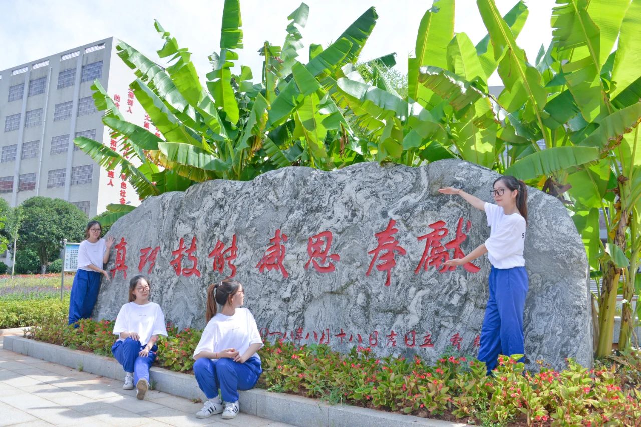 正面镌刻的校训“真理、技能、感恩、奉献”,