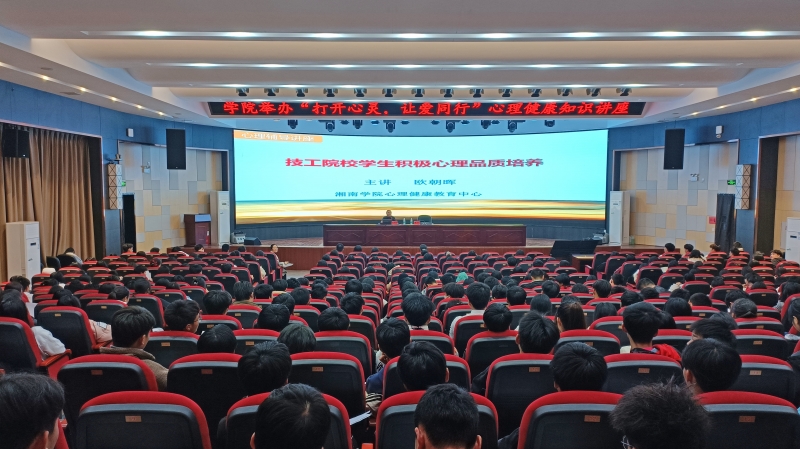 学生工作处(通讯员 雷丽华)为进一步加强学生心理健康教育,增强学生心理健康意识,培育学生积极心理品质,促进学生心理健康发展。12月9日晚,学院特邀湘南学院心理健康教育咨询中心副主任欧朝晖教授在报告厅作了题为《技工院校学生积极心理品质培养》的心理健康知识讲座。