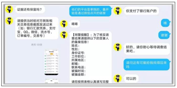 对方让她加“追回中心”QQ号