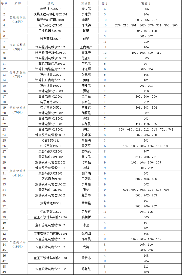 2022年5月份学生“文明寝室”名单
