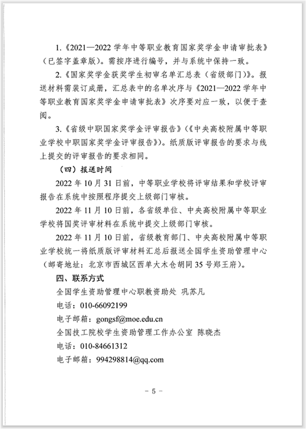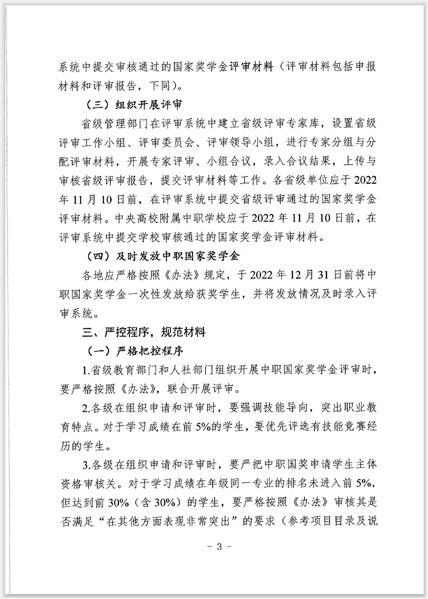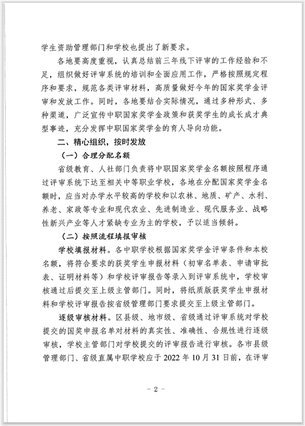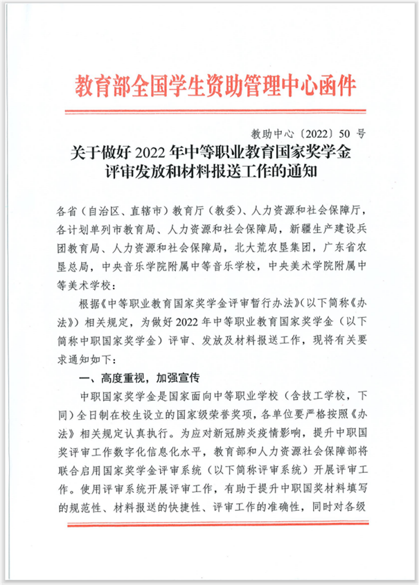 关于做好2022年中等职业教育国家奖学金评审发放和材料报送工作的通知