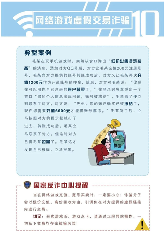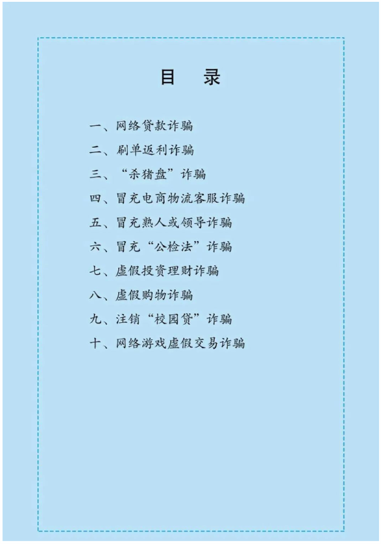 为提高广大群众防骗意识,国家反诈中心制作了《防范电信网络诈骗宣传手册》,向广大人民群众介绍了十种常见的电信网络诈骗类型,披露了诈骗犯罪手法、解析了典型案例,同时进行了防骗提示。