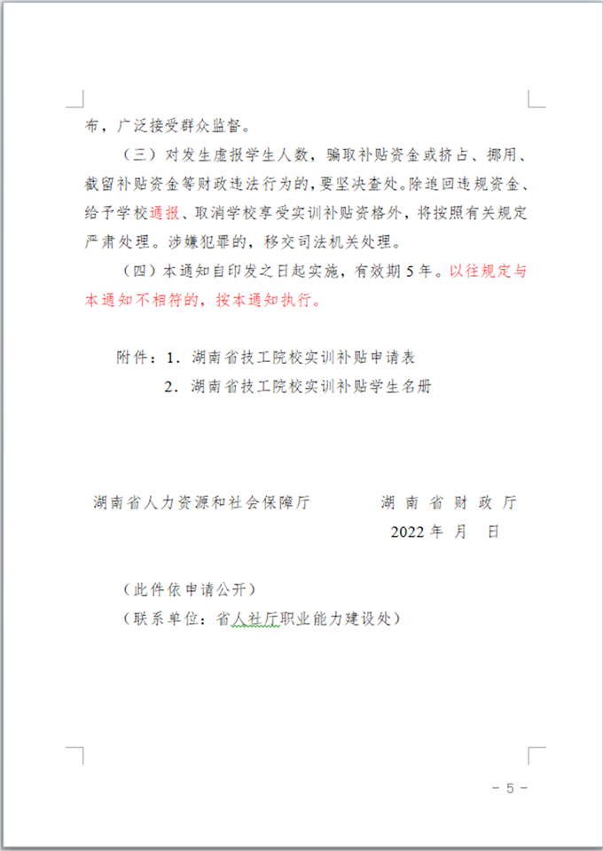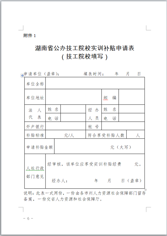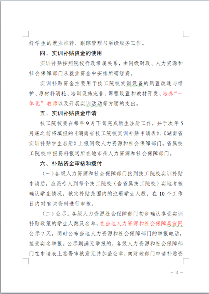 湖南省人力资源和社会保障厅 湖南省财政厅 关于对公办技工院校实施实训补贴政策的通知