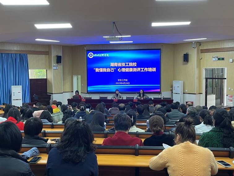 为了认真落实湖南省人力资源和社会保障厅组织开展的全省技工院校心理健康教育现状及学生心理健康普查工作的相关要求,4月24日下午,学生工作处在综合楼多媒体教室召开湖南省技工院校“我懂我自己”心理健康测评工作培训会。