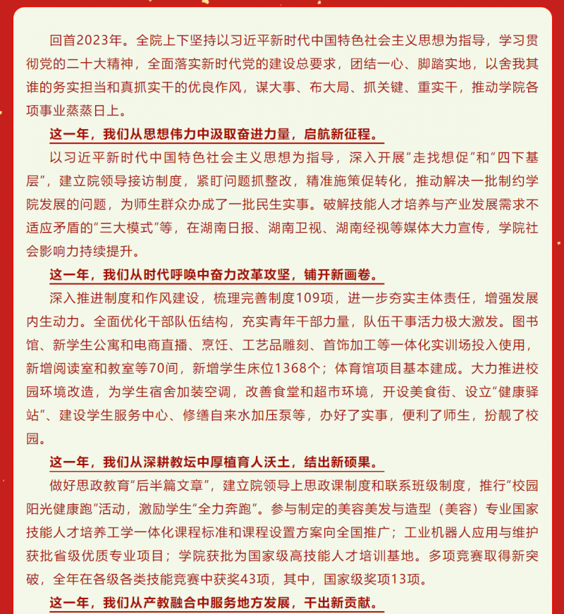 团结奋进 筑梦未来——郴州技师学院2024年新年贺词